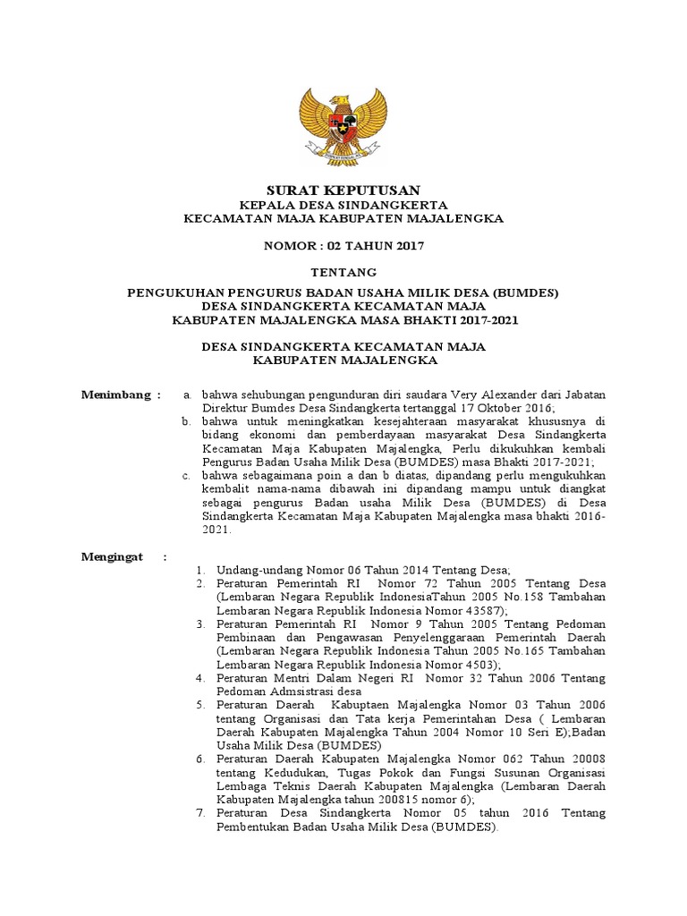 Contoh proposal permodalan bumdes (download) contoh anggaran dasar bumdes (download) Sk penerima jamban masyarakat 2018 : Sk atau surat keputusan kepala desa tentang pembentukan pengurus harian dan badan pengawas badan usaha milik desa (bumdesa) diterbitkan untuk melaksanakan peraturan desa tentang pendirian badan usaha milik desa, perlu membentuk pengurus harian dan dewan pengawas badan usaha milik desa (bum desa) dan untuk menindaklanjuti hasil musyawarah desa tentang pendirian badan usaha milik desa dan. Pemerintah desa pondokpanjang mendirikan badan usaha milik desa dalam upaya meningkatkan pendapatan masyarakat desa sesuai. Sk perangkat desa rensing bat, baru 2019 :